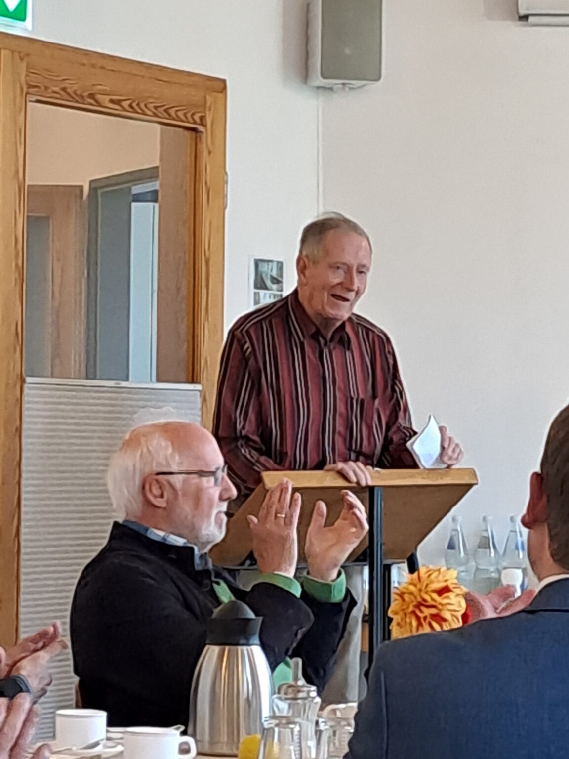Ihr langjähriger Leiter, Klaus Jehnert, hatte gemeinsam mit seinen Mitstreitern ins Pfarrheim Ründeroth eingeladen und viele waren dieser Einladung gefolgt. Zu Kaffee und Kuchen gab es Ansprachen von Gero Karthaus und Lukas Miebach, dem da noch amtierenden und dem jetzt neuen Bürgermeister von Engelskirchen. Beide dankten dem SKFM Ründeroth für die jahrzehntelange ehrenamtliche Arbeit für Menschen mit Hilfebedarf im Raum Ründeroth und Osberghausen. Klaus Jehnert berichtete über die Entstehung und Entwicklung der Gruppe über fünf Jahrzehnte hinweg.